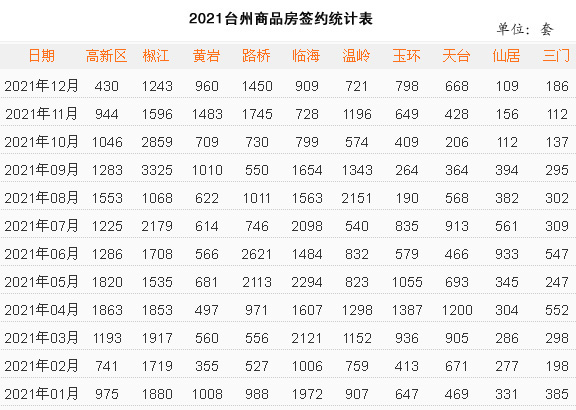 2021年,台州楼市的总体走势是高开高走,上半年处于量价齐升状态,下半年密集调控后,开始有所回落,特别是二手房市场步入寒冷的冬天。